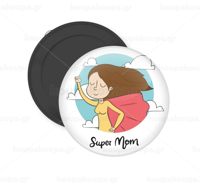 Super mom, Μαγνητάκι ψυγείου στρογγυλό διάστασης 5cm