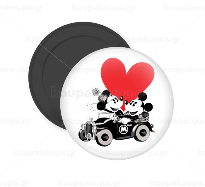 Mickey & Minnie love car, Μαγνητάκι ψυγείου στρογγυλό διάστασης 5cm