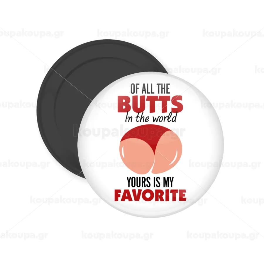 Of all the Butts in the world, your's is my favorite, Μαγνητάκι ψυγείου στρογγυλό διάστασης 5cm