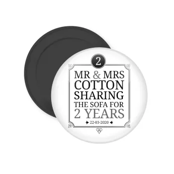Mr & Mrs Sharing the sofa, Μαγνητάκι ψυγείου στρογγυλό διάστασης 5cm