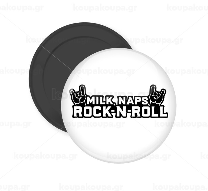 Milk, Naps, Rock N Roll, Μαγνητάκι ψυγείου στρογγυλό διάστασης 5cm