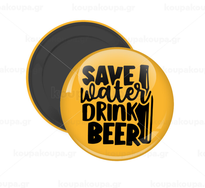 Save Water, Drink BEER, Μαγνητάκι ψυγείου στρογγυλό διάστασης 5cm
