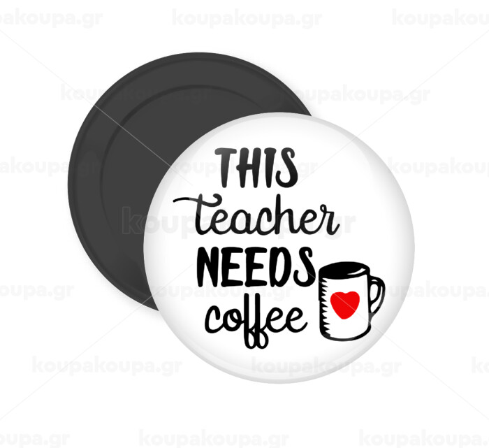 Τhis teacher needs coffee, Μαγνητάκι ψυγείου στρογγυλό διάστασης 5cm