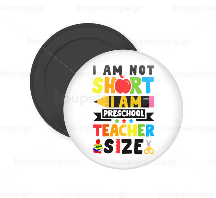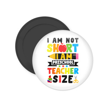 I Am Not Short I Am Preschool Teacher Size, Μαγνητάκι ψυγείου στρογγυλό διάστασης 5cm