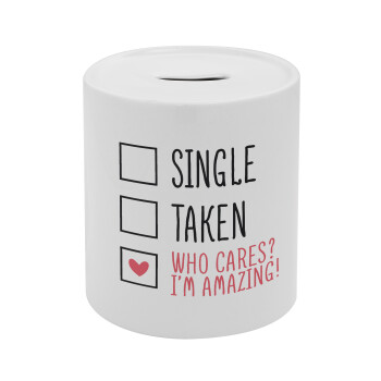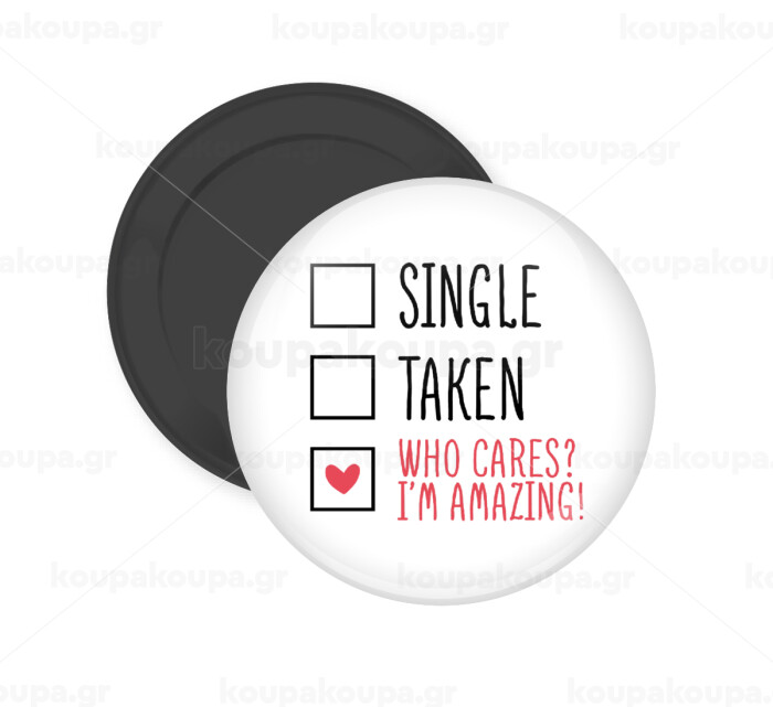 Single, Taken, Who cares i'm amazing, Μαγνητάκι ψυγείου στρογγυλό διάστασης 5cm