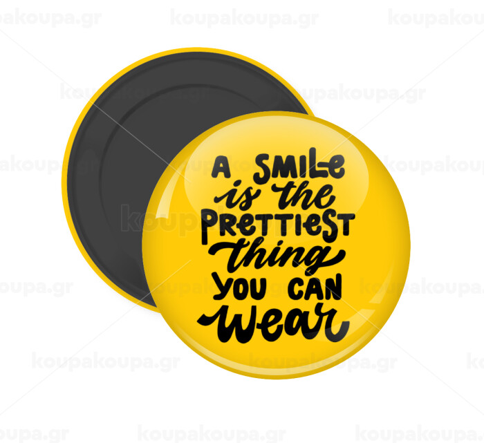 A smile is the prettiest thing you can wear, Μαγνητάκι ψυγείου στρογγυλό διάστασης 5cm