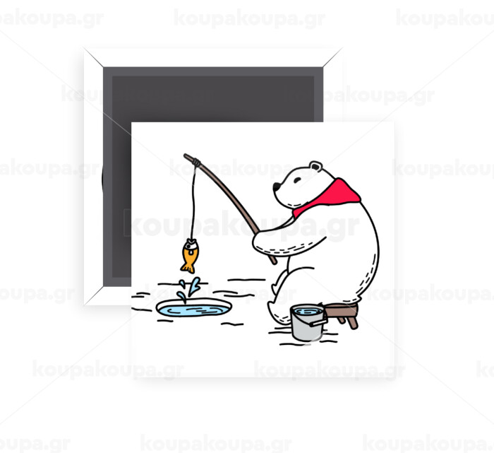 Αρκούδα ψαρεύει, Μαγνητάκι ψυγείου τετράγωνο διάστασης 5x5cm