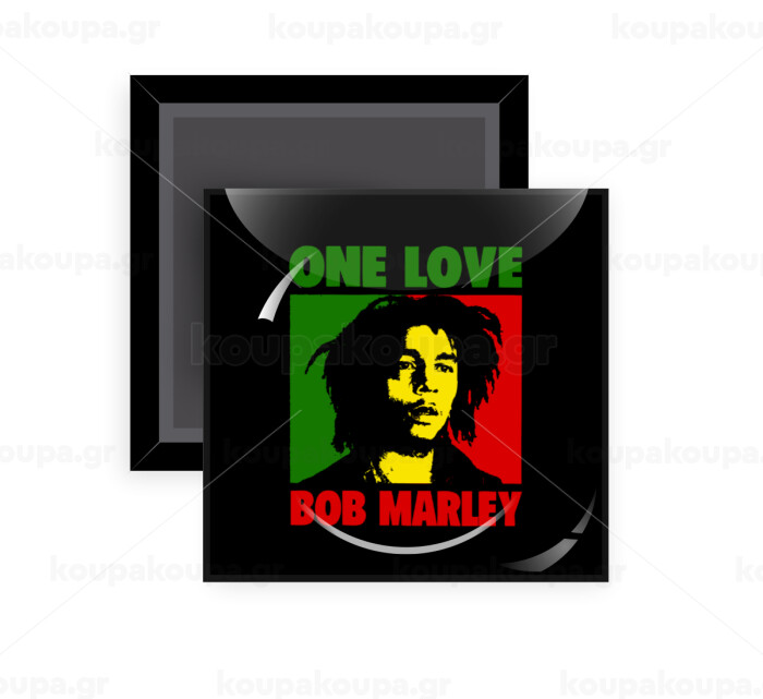 Bob marley, one love, Μαγνητάκι ψυγείου τετράγωνο διάστασης 5x5cm
