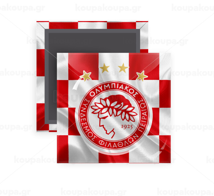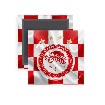 Olympiakos flag, Μαγνητάκι ψυγείου τετράγωνο διάστασης 5x5cm