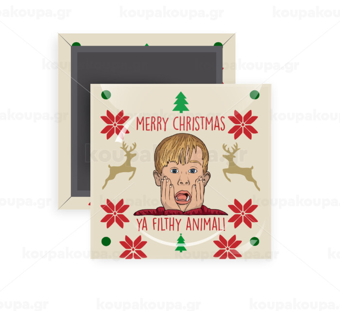 home alone, Merry Christmas ya filthy animal, Μαγνητάκι ψυγείου τετράγωνο διάστασης 5x5cm