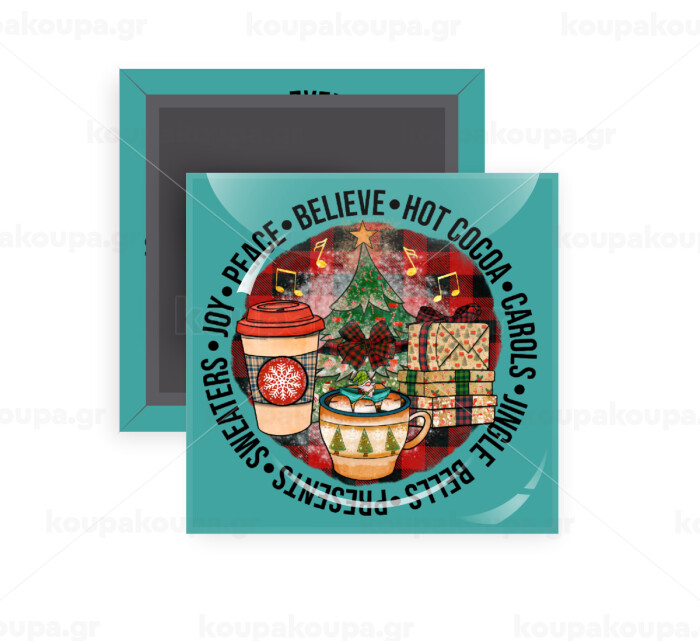 Joy, Peace, Believe, Hot Cocoa, Carols, Μαγνητάκι ψυγείου τετράγωνο διάστασης 5x5cm