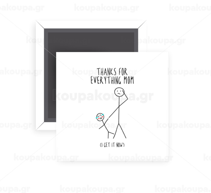 Thanks for everything mom, Μαγνητάκι ψυγείου τετράγωνο διάστασης 5x5cm
