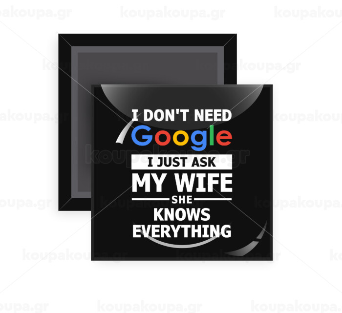 I don't need Google, just ask my WIFE, Μαγνητάκι ψυγείου τετράγωνο διάστασης 5x5cm