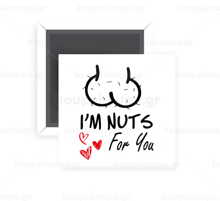 I'm Nuts for you, Μαγνητάκι ψυγείου τετράγωνο διάστασης 5x5cm
