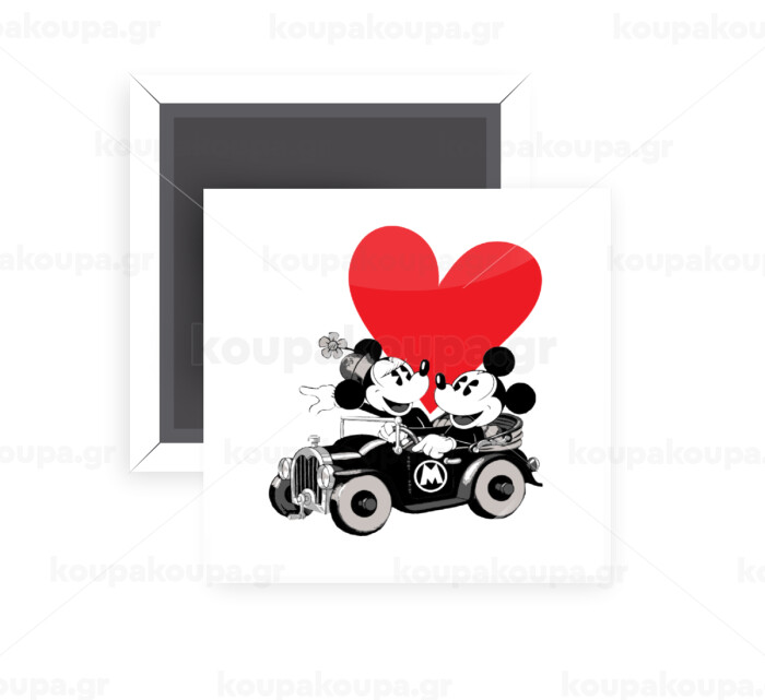 Mickey & Minnie love car, Μαγνητάκι ψυγείου τετράγωνο διάστασης 5x5cm