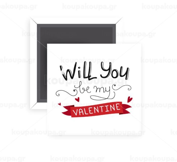Will you be my Valentine???, Μαγνητάκι ψυγείου τετράγωνο διάστασης 5x5cm
