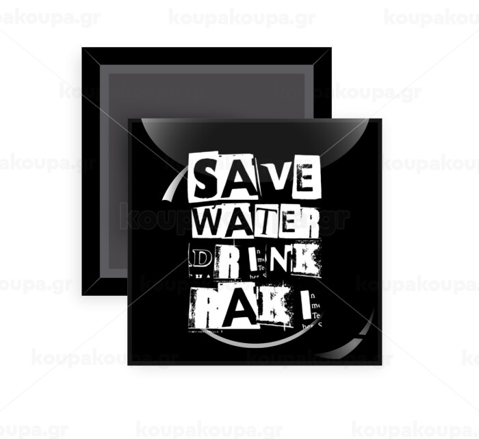 Save Water, Drink RAKI, Μαγνητάκι ψυγείου τετράγωνο διάστασης 5x5cm