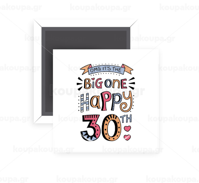 Big one Happy 30th, Μαγνητάκι ψυγείου τετράγωνο διάστασης 5x5cm