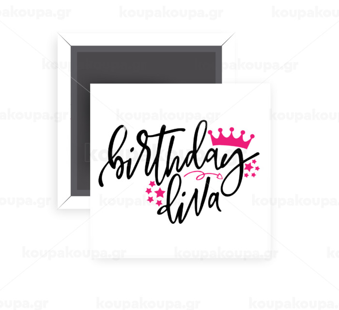 Birthday Diva queen, Μαγνητάκι ψυγείου τετράγωνο διάστασης 5x5cm