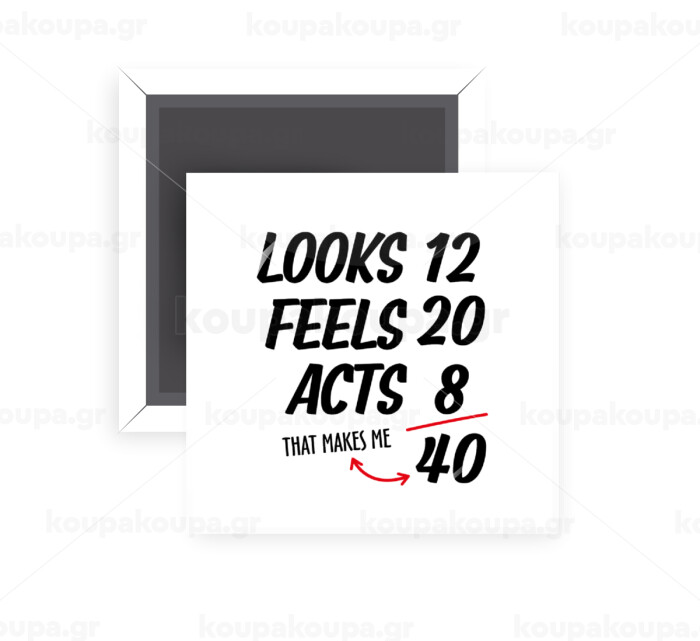 Looks, feels, acts LIKE your AGE, Μαγνητάκι ψυγείου τετράγωνο διάστασης 5x5cm