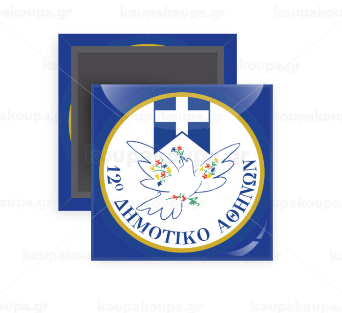 Σχολικό σήμα περιστέρι με δάφνες, Μαγνητάκι ψυγείου τετράγωνο διάστασης 5x5cm
