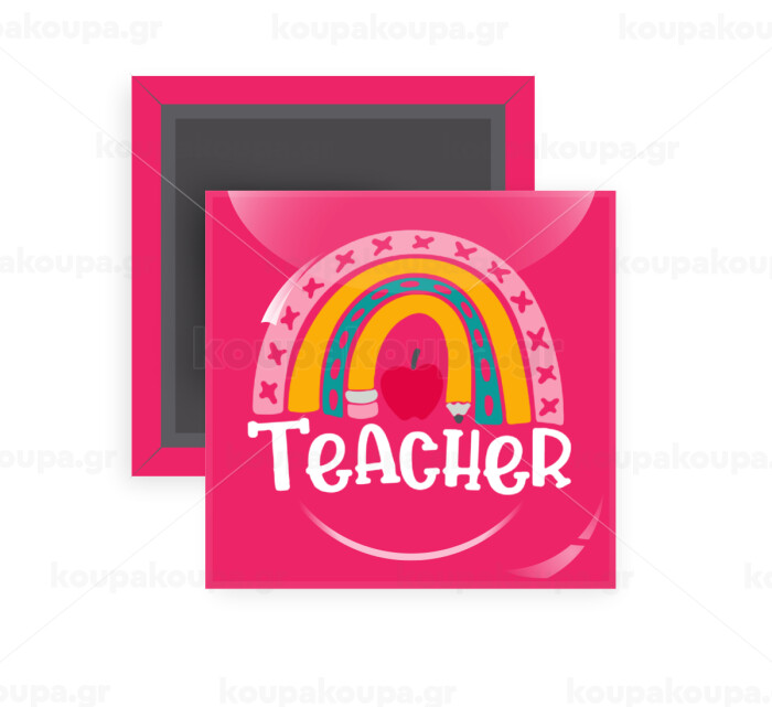 Rainbow teacher, Μαγνητάκι ψυγείου τετράγωνο διάστασης 5x5cm
