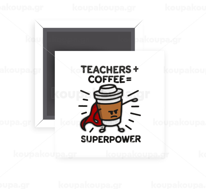 Teacher Coffee Super Power, Μαγνητάκι ψυγείου τετράγωνο διάστασης 5x5cm