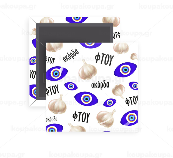 Φτου, φτου, σκόρδα!!!, Μαγνητάκι ψυγείου τετράγωνο διάστασης 5x5cm