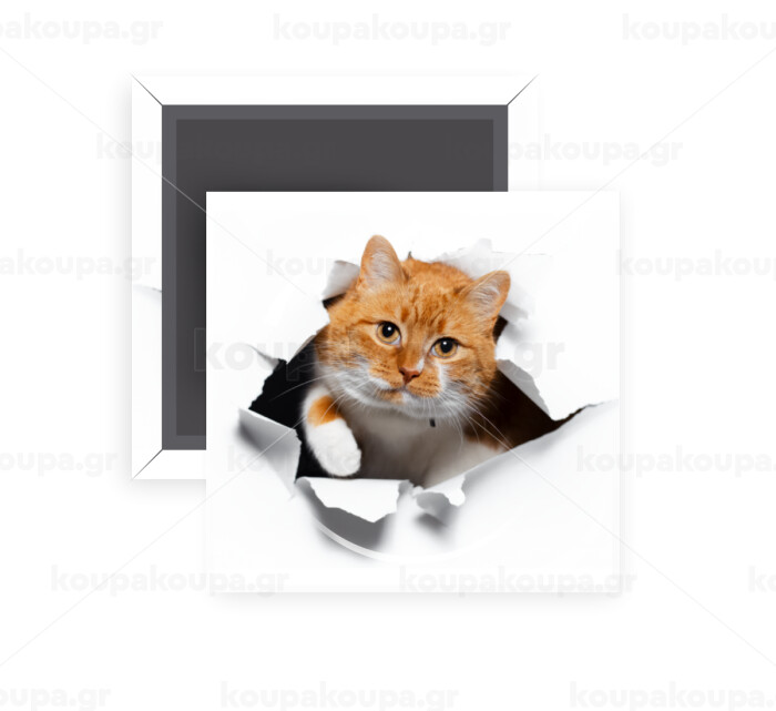 Cat cracked, Μαγνητάκι ψυγείου τετράγωνο διάστασης 5x5cm
