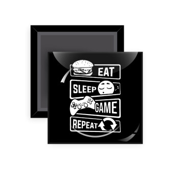 Eat Sleep Game Repeat, Μαγνητάκι ψυγείου τετράγωνο διάστασης 5x5cm