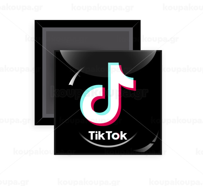 tik tok black, Μαγνητάκι ψυγείου τετράγωνο διάστασης 5x5cm