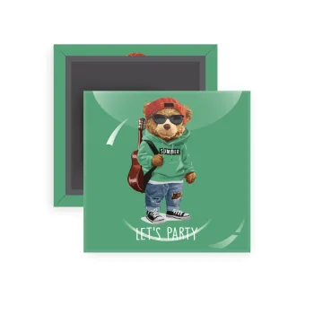 Let's Party Bear, Μαγνητάκι ψυγείου τετράγωνο διάστασης 5x5cm