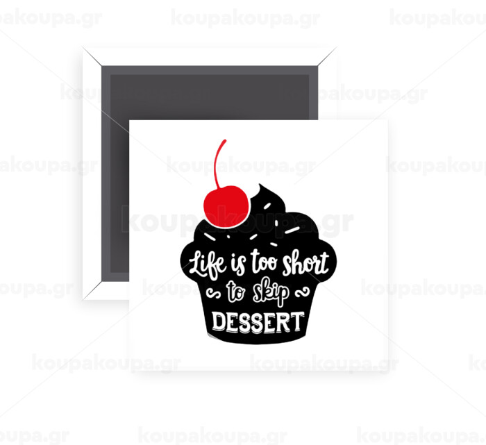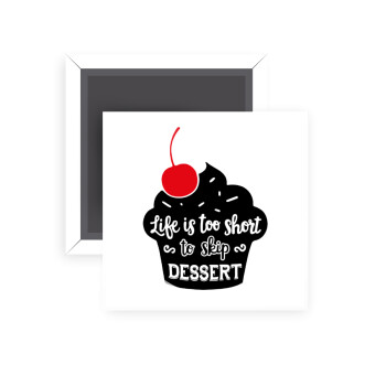 Life is too short, to skip Dessert, Μαγνητάκι ψυγείου τετράγωνο διάστασης 5x5cm