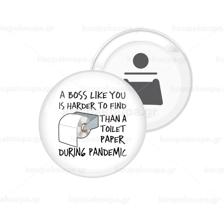 A boss like you is harder to find, than a toilet paper during pandemic, Μαγνητάκι και ανοιχτήρι μπύρας στρογγυλό διάστασης 5,9cm