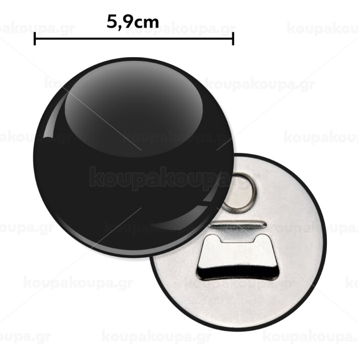 Στρογγυλό μαγνητάκι και ανοιχτήρι μπύρας, γυαλιστερό με μεταλλική πλάτη, τα μαγνητάκια  μπορούν να τοποθετηθούν σε ψυγείο ή οποιαδήποτε άλλη μεταλλική επιφάνεια. Μεγάλη αντοχή στον χρόνο λόγο της πλαστικοποίησης του θέματος.