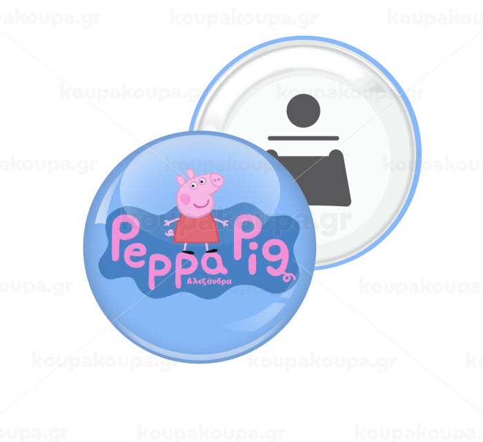 Πέππα το γουρουνάκι μπλε με όνομα, Μαγνητάκι και ανοιχτήρι μπύρας στρογγυλό διάστασης 5,9cm