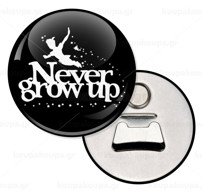 Peter pan, Never Grow UP, Μαγνητάκι και ανοιχτήρι μπύρας στρογγυλό διάστασης 5,9cm