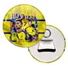 Στρογγυλό μαγνητάκι και ανοιχτήρι μπύρας, γυαλιστερό με μεταλλική πλάτη, τα μαγνητάκια  μπορούν να τοποθετηθούν σε ψυγείο ή οποιαδήποτε άλλη μεταλλική επιφάνεια. Μεγάλη αντοχή στον χρόνο λόγο της πλαστικοποίησης του θέματος.