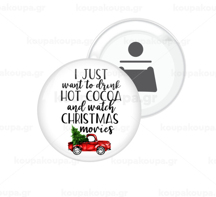I just want to drink hot cocoa and watch christmas movies pickup car, Μαγνητάκι και ανοιχτήρι μπύρας στρογγυλό διάστασης 5,9cm