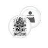 Στρογγυλό μαγνητάκι και ανοιχτήρι μπύρας, γυαλιστερό με μεταλλική πλάτη, τα μαγνητάκια  μπορούν να τοποθετηθούν σε ψυγείο ή οποιαδήποτε άλλη μεταλλική επιφάνεια. Μεγάλη αντοχή στον χρόνο λόγο της πλαστικοποίησης του θέματος.