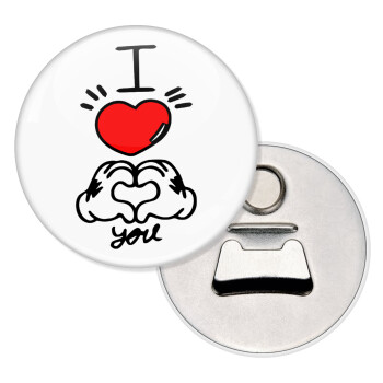comics hands love, Μαγνητάκι και ανοιχτήρι μπύρας στρογγυλό διάστασης 5,9cm