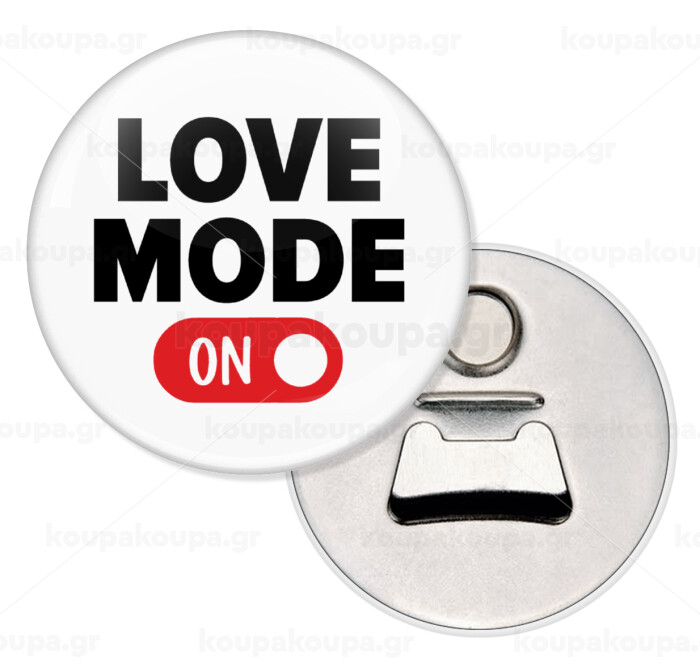 LOVE MODE ON, Μαγνητάκι και ανοιχτήρι μπύρας στρογγυλό διάστασης 5,9cm