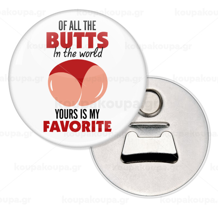 Of all the Butts in the world, your's is my favorite, Μαγνητάκι και ανοιχτήρι μπύρας στρογγυλό διάστασης 5,9cm