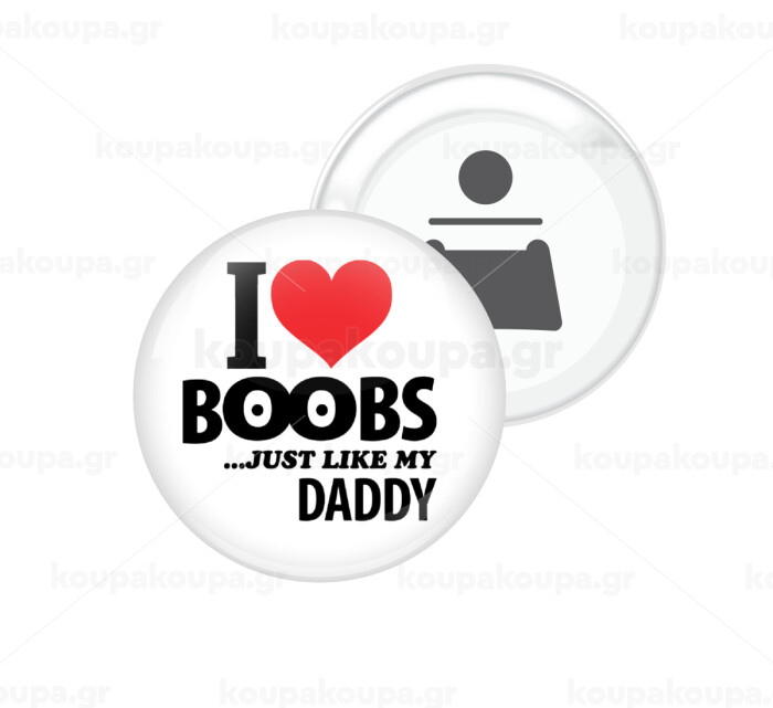 I Love boobs ...just like my daddy, Μαγνητάκι και ανοιχτήρι μπύρας στρογγυλό διάστασης 5,9cm