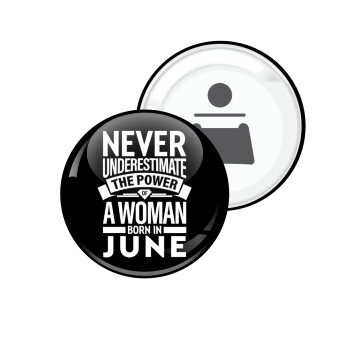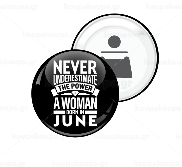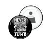 Never Underestimate the poer of a Woman born in..., Μαγνητάκι και ανοιχτήρι μπύρας στρογγυλό διάστασης 5,9cm