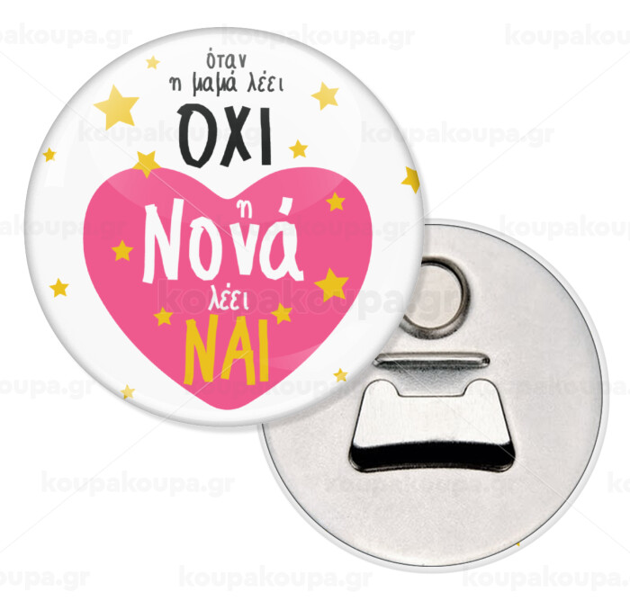 Η νονά λέει ναι!!!, Μαγνητάκι και ανοιχτήρι μπύρας στρογγυλό διάστασης 5,9cm