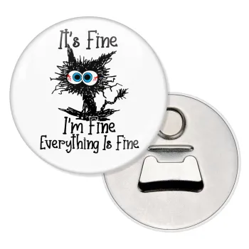Cat, It's Fine I'm Fine Everything Is Fine, Μαγνητάκι και ανοιχτήρι μπύρας στρογγυλό διάστασης 5,9cm