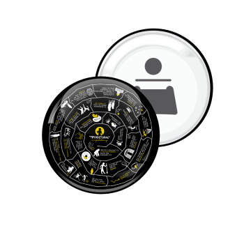 Στρογγυλό μαγνητάκι και ανοιχτήρι μπύρας, γυαλιστερό με μεταλλική πλάτη, τα μαγνητάκια  μπορούν να τοποθετηθούν σε ψυγείο ή οποιαδήποτε άλλη μεταλλική επιφάνεια. Μεγάλη αντοχή στον χρόνο λόγο της πλαστικοποίησης του θέματος.