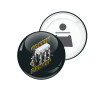 Στρογγυλό μαγνητάκι και ανοιχτήρι μπύρας, γυαλιστερό με μεταλλική πλάτη, τα μαγνητάκια  μπορούν να τοποθετηθούν σε ψυγείο ή οποιαδήποτε άλλη μεταλλική επιφάνεια. Μεγάλη αντοχή στον χρόνο λόγο της πλαστικοποίησης του θέματος.