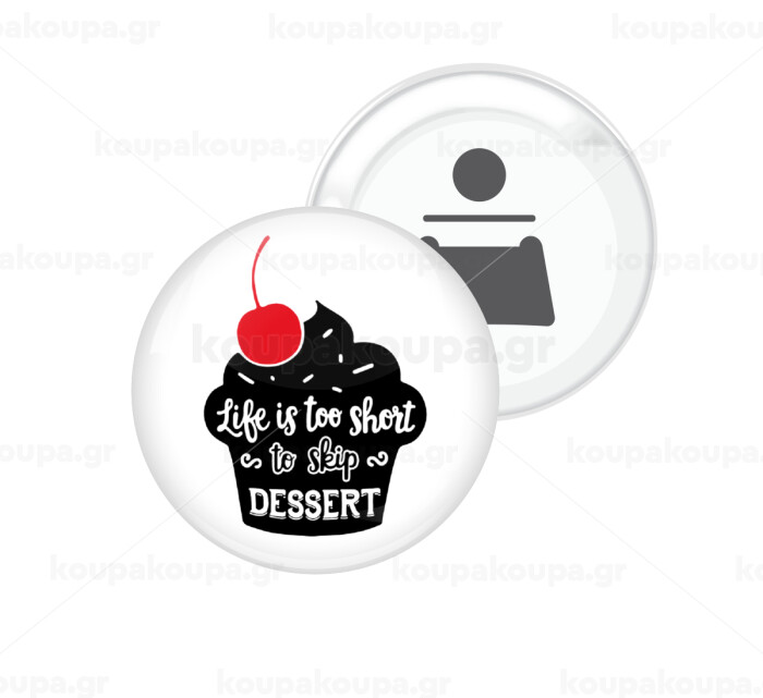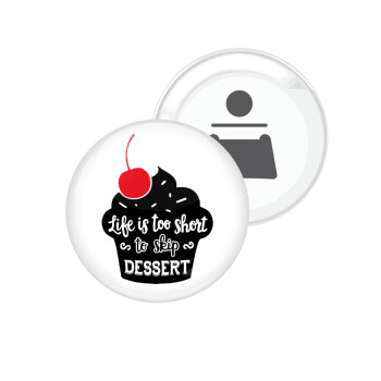 Life is too short, to skip Dessert, Μαγνητάκι και ανοιχτήρι μπύρας στρογγυλό διάστασης 5,9cm
